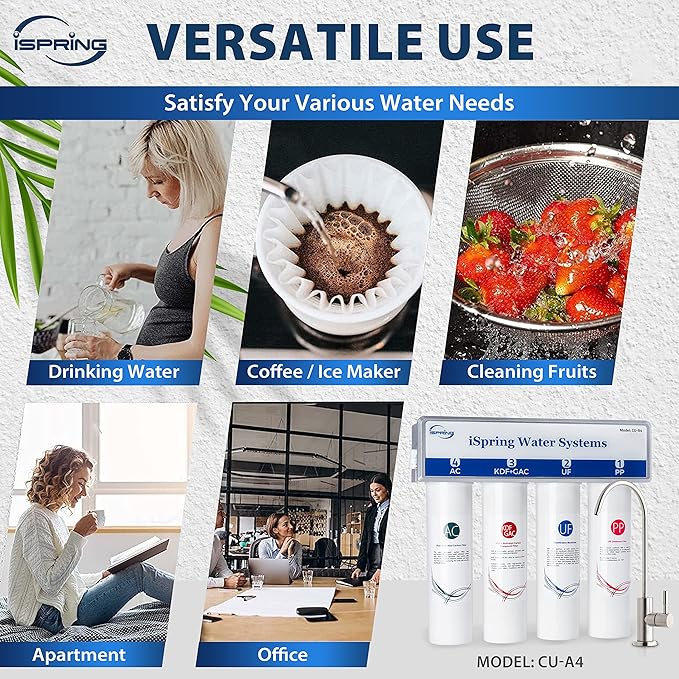 - SIMPLE AND FLEXIBLE: NO WASTE WATER and No storage water tank required. The CU-A4 provides highly effective water filtration for any number of clean water needs - at the sink, in the refrigerator, for coffee makers and more.