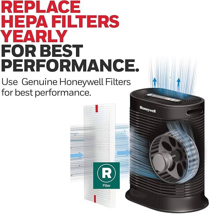 - EFFECTIVE AIR CLEANING & CIRCULATION – A Honeywell Air Purifier with a Honeywell Certified filter will filter & circulate air up to 4.8x an hour in stated room size. Replace HEPA Filters 1x per year. Pre-filters used with this filter are sold separately.