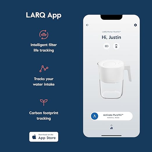 - INTELLIGENT FILTER TRACKING – Smart sensors track the volume of water filtered through. Take the guesswork out of filter replacements. Get the LARQ App (iOS only) to control your Pitcher in the palm of your hands.