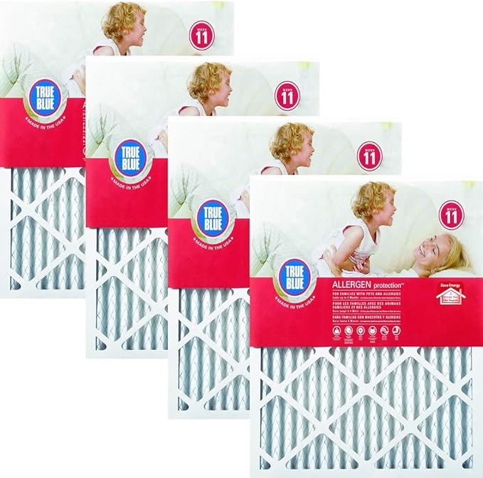 True Blue 20x24x1 MERV 11 Allergen Air Filter (4-Pack) | Electrostatic Pleated HVAC AC Furnace Air Filter | Replacement Filter for Home Use | Made in USA