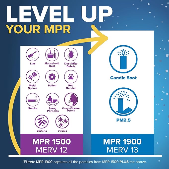 - COUNTLESS MICROPARTICLES: With a 1500 MPR and MERV 12 rating, as well as a 54% small particle capture rate (1), your Filtrete Filter will help capture many microparticles from the air passing through it