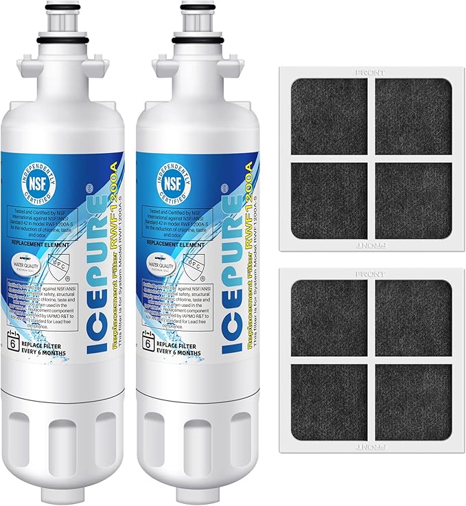 - Efficient Filtration Capacity- ICEPURE RWF1200A refrigerator water filter replacement for LG ADQ36006101 and Kenmore Elite 9690 reduces many substances from your water including 99% of Chlorine, taste, THM, VOCs, Particles and other major impurities, significantly improving the taste of drinking water to provide pure-tasting water, while retaining minerals beneficial to the human body.