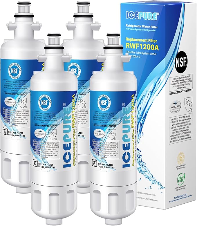- Authoritative Certifications- ICEPURE RWF1200A replacement for LG LT700P refrigerator water filter bears major Authoritative Certifications on markets, such as NSF/ANSI 42, NSF/ANSI/CAN 372 Lead-Free from IAPMO, European Food Grade Regulations EC-1935/2016, ROHS, REACH, BPA-Free, TUV and Australian Water Mark.
