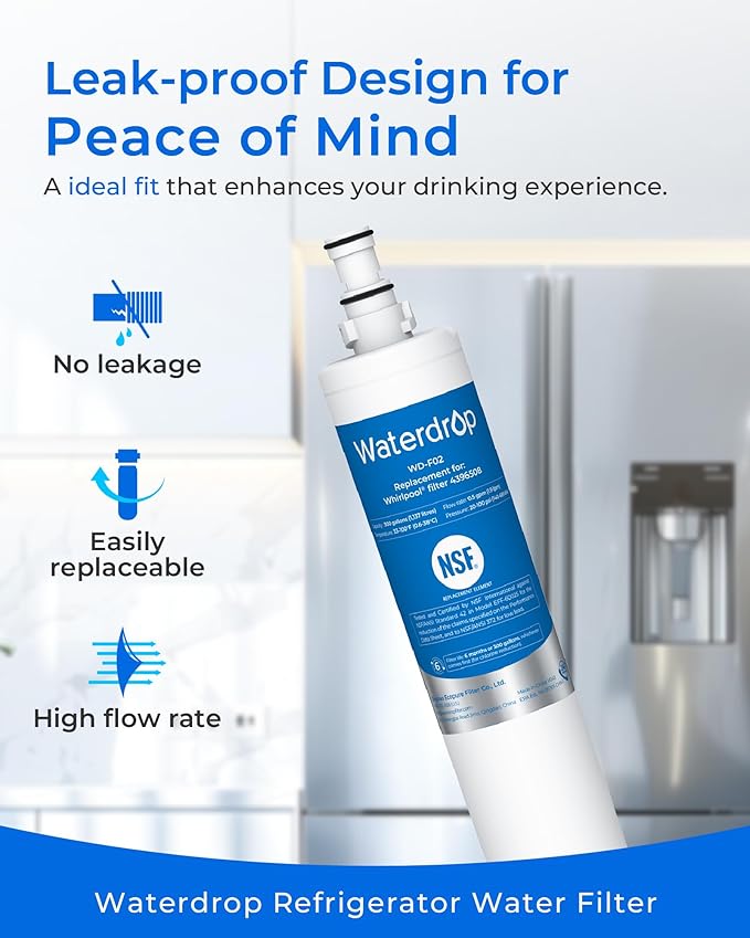 - [BPA-free and food-grade materials] At Waterdrop, we prioritize your safety. This is why we have used only safe materials in this refrigerator filter, as verified by the NSF 372 certification for lead-free materials.