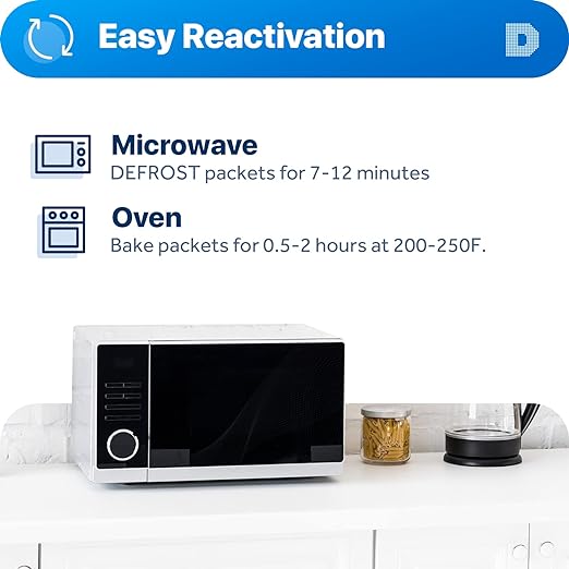 - [Ultimate Moisture Absorption and Reactivation] Packet material is high quality coated paper for Ultimate Moisture Absorption and Heat Resistance for Reuse (Place in the Oven for 0.5 to 2 hours at 200 to 250F or Microwave for About 7 to 12 Minutes at Defrost Mode)