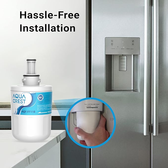 - 100% safe materials: AQUA CREST adopted BPA-free and food-grade materials in making this refrigerator filter. This claim is verified and backed by the NSF 372 certification that declares this filter housing lead-free.