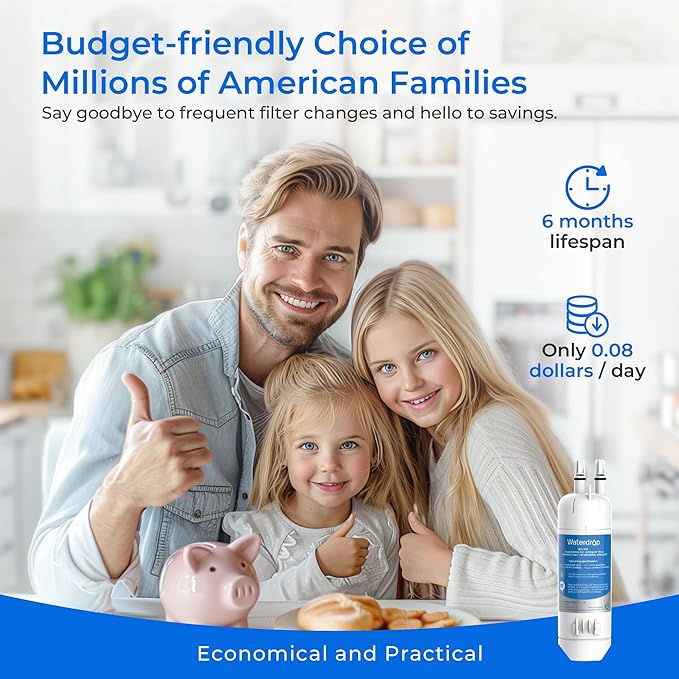 - You do not have to go the extra mile to monitor your refrigerator filter’s lifespan. This Waterdrop refrigerator filter is shipped with complimentary month install stickers that help track the service life at all times. Now you know when you have exhausted the 200 gallons or 6 months of pure water, depending on the water conditions.