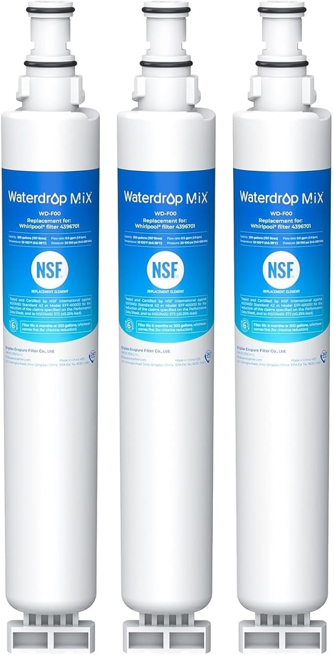 Waterdrop 4396701 Replacement for Whirlpool® EDR6D1, EveryDrop® Filter 6, 4396701, Kenmore 9915, 469915, WF293, RWF2000A, 4396702, LC200V, L200V, WFL200 Refrigerator Water Filter, 3 Pack