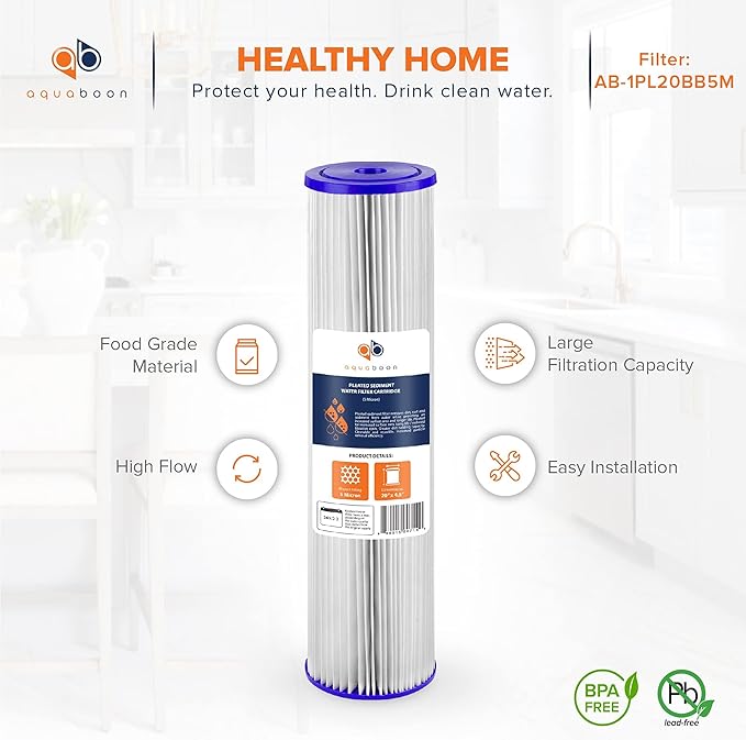 - Universal 20-Inch Compatibility: Our pleated water filter fits effortlessly into 20x4.5 water filter housing models, ensuring seamless integration into existing filtration setup. Enjoy quick, easy water filters installation with no compatibility issues.
