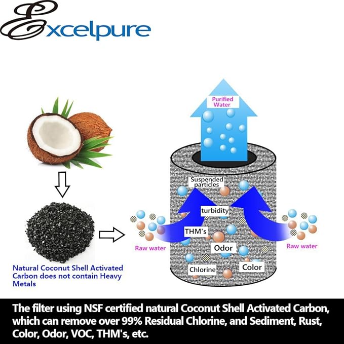 - Premium Construction: Crafted from BPA-free and food-grade materials, this filter boasts advanced coconut shell carbon for enhanced filtration. With an outer layer of 0.5 Micron, it ensures thorough filtration, while independent third-party testing guarantees the removal of heavy metals, large sediments, and other impurities, making it a reliable choice for clean, refreshing water.