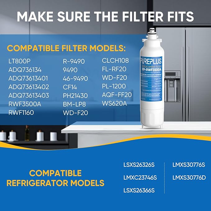 - ❄️Compatible Models - LT800PC/PCS, Genuine ADQ32617801, OEM ADQ73613403, ADQ32617703, ADQ73613401-S, LT800PCS, ADQ73613407, Sears ADQ73613402-S, ADQ72910901, 46-9490, 469490, 4609490000, AQF-LT800P, WS620A, FL-RF20-S, WD-LT800P, MB-LT800P, MB-lt800P-P, RWF1160, R-9490, WFEK00073, MPF16095, CWMF042, DWF-35, WF-LT800P, CF14, BCF80, WF-LT800P.