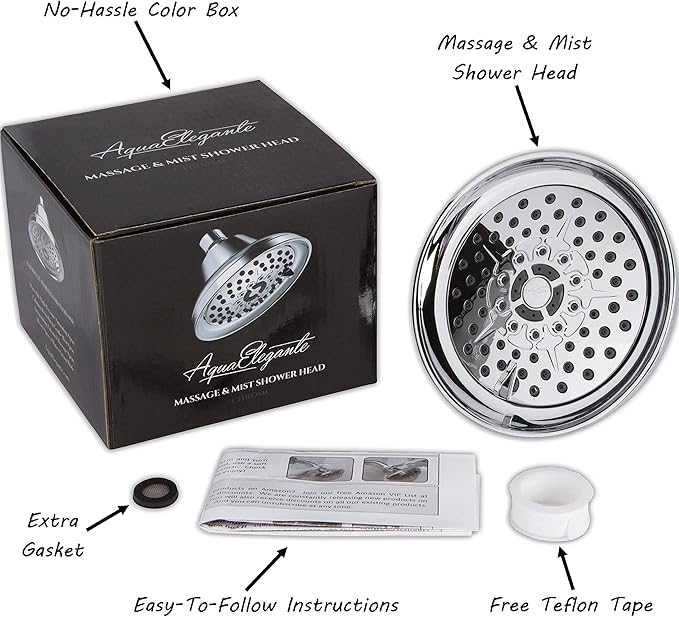 - š¦ UNLIKE OTHER SHOWER HEADS THAT are made from cheap, thin plastic that leaks after a few showers, the Aqua Elegante Shower Head has a THICK LAYER of ROBUST ABS THERMOPLASTIC RESIN that is BPA FREE. The high pressure showerhead RESISTS CORROSION, WITHSTANDS PHYSICAL IMPACT, and DOESN'T RUST - while still being LIGHTWEIGHT and EASY-TO-HANDLE. What this means to you is a LONG LASTING shower head without having to deal with internal leaks.