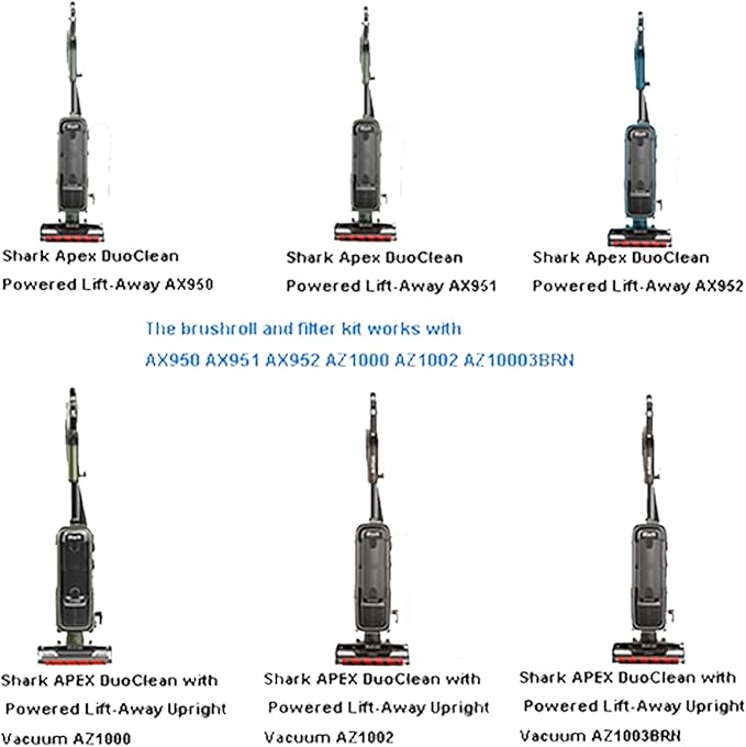 - The brush roll and heap foam filters replacement are compatible with Shark APEX DuoClean Lift-Away with Zero-M AX950 AX951 AX952 AZ1000 40 AZ1000W AZ1002 40 AZ1002BRN ZU881 ZU885 NV830 NV831 NV835 vacuum cleaners,compares to part # 1173FT950,XFF650 and XHF650.