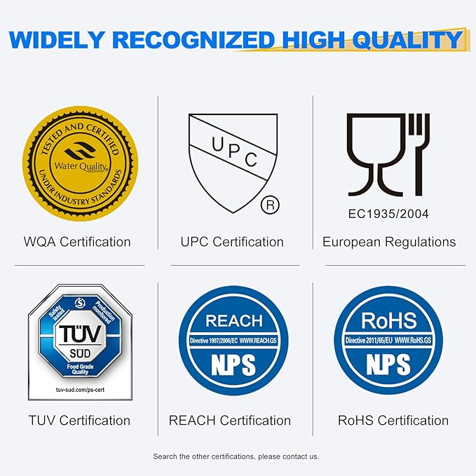 - External Testing Certification : NSF, IAPMO, WQA, ANSI, RoHS, CSA
