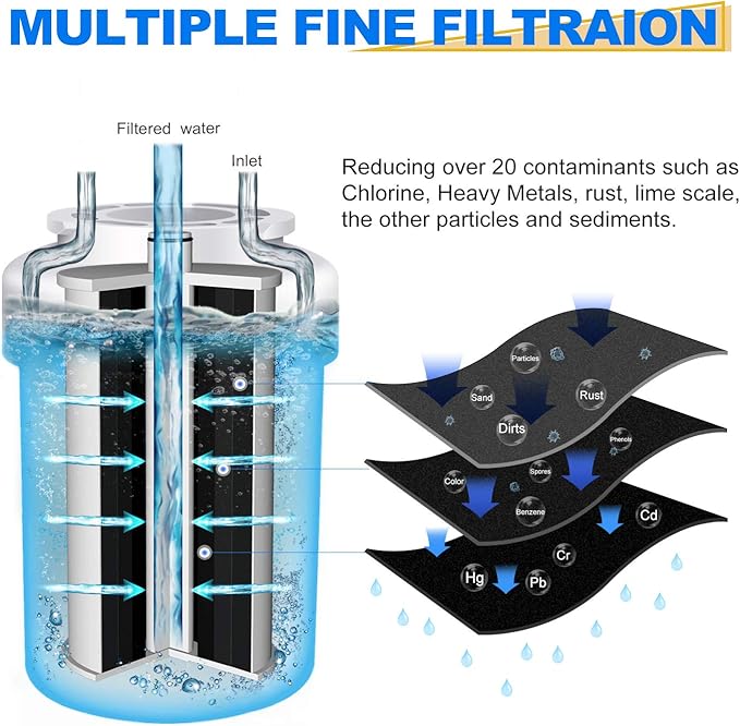 - š¦ššš«ššØš«š¦šš§šš - Using multi-stage filtration technology that would helps to remove Chlorine, THM, VOCs, cadmium, chromium, copper, and other suspended particles from water.