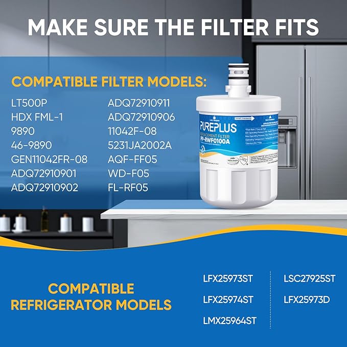 - ❄️Compatible Models - OEM LT500PC, 5231JA2002B, 5231JA2002A-S, 5231JA2002B-S, CNZ5231JA2002A, T2004CNZ1648-0019, 79551012010, ADQ72910902, GENUINE 46-9890, ADQ7291090, GEN11042F-08, ATAG 6572447, AK100V, 88009234, WS605A, WSL-1, WD-LT500P, RWF1050, FL-RF05, AQF-LT500P, R-9890, PL-1100, RFC0100A, WFEK00015, MB-LT500P, RWF0100A, RWF0100AH Premium Fridge Cartridge.