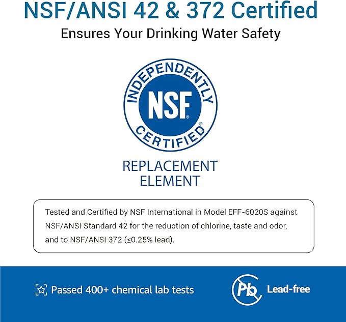 - Safe materials: We select exclusively BPA-free and food-grade filter materials that are NSF 372 certified lead-free.