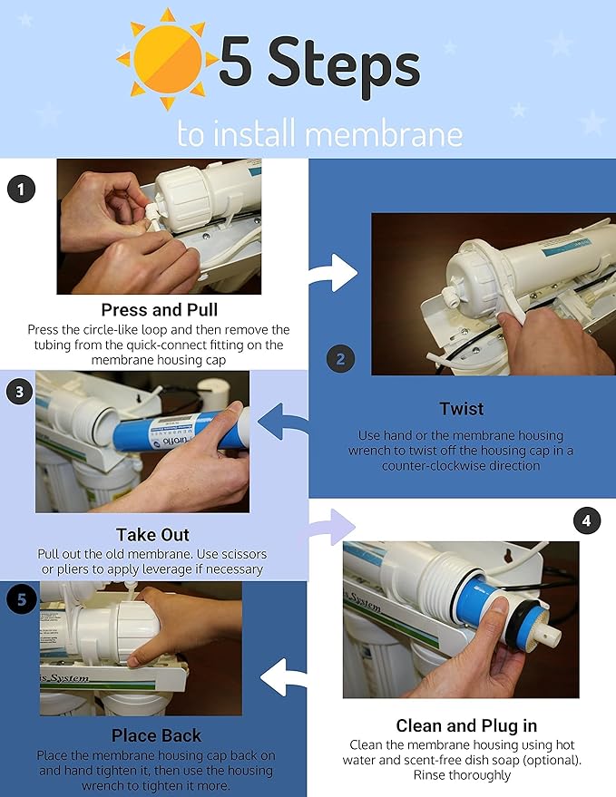 - Easy to Install: Reference the video on this page, or on YouTube. The installation of the 5 stage RO filter replacement is simple and universal to most standard RO water filter systems.