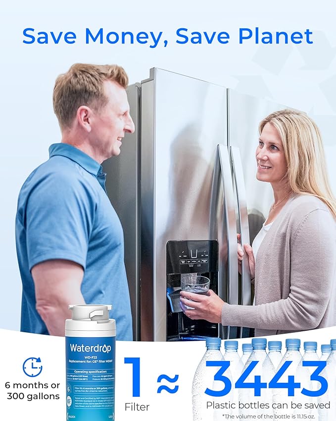 - [Complimentary month install stickers] You do not have to go the extra mile to monitor your refrigerator filter’s lifespan. This Waterdrop refrigerator filter is shipped with complimentary month install stickers that help track the service life at all times. Now you know when you have exhausted the 300 gallons or 6 months of pure water, depending on the water conditions.