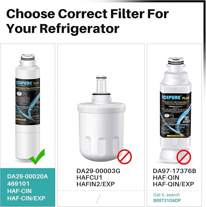 - [Compatible Models]- DA29-00020B, DA29-00020A, DA97-08006A/B, DA-97-08006A, DA-97-08006A-B, DA-97-08006B, DA29-00019A, DA2900019A, DA2900020A, DA2900020B, DA97-08006A-B, HAF-CIN, HAF-CIN-EXP, HAF CIN EXP, HAF CIN, HAFCIN, Kenmore: 04609101000, 09101, 46-9101, 469101,9101, Tier1 RWF1011, ClearWater Filters CWMF021, Pureza filter PF7, OnePurify RFC0700A, Aqua Fresh WF294, BRISTI LP-300P, Dista DWF-7, Refresh R-9101, EcoBlueLife EBL7800, AQF-DA29-00020B, BCF94, WFC1401, Pure Line PL-200
