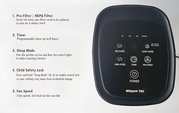- [ Keeps the Air Clean ] — Reduces the amount of airborne germs/viruses by filtering and continuously cleaning airborne particles away from your space. This helps you and your family stay healthy during this flu season.
