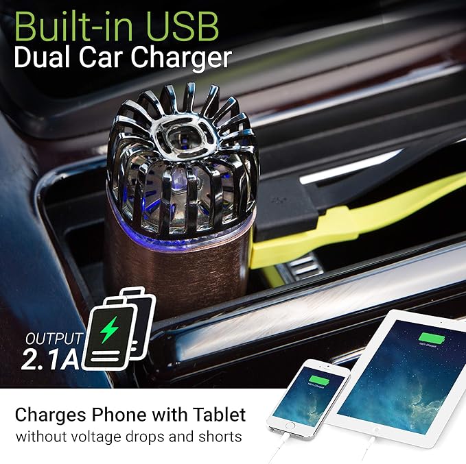 Car Air Purifier Ionizer - 12V Plug-in Ionic Anti-Microbial Car Deodorizer with Dual USB Charger - Smoke Smell, Pet and Food Odors, Allergens, Viruses Eliminator for Car (Matte Copper)