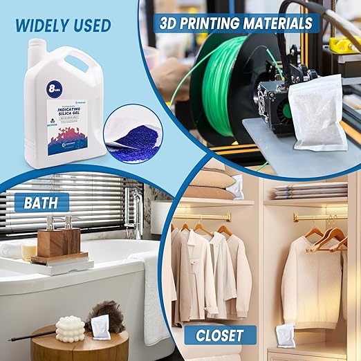- 【Versatile Application】: Indicating silica gel is widely used to protect various enclosed storage spaces including safes, ammo cans, toolboxes, 3D printer filament storage boxes, weapon cases, closets, and more. With 2lbs of indicating silica gel, you can effectively prevent moisture damage to guns, important documents, collectibles, books, jewelry, photo albums, shoes, camera lenses, toys, leather clothing, ammunition, photo equipment, and air dryer systems.