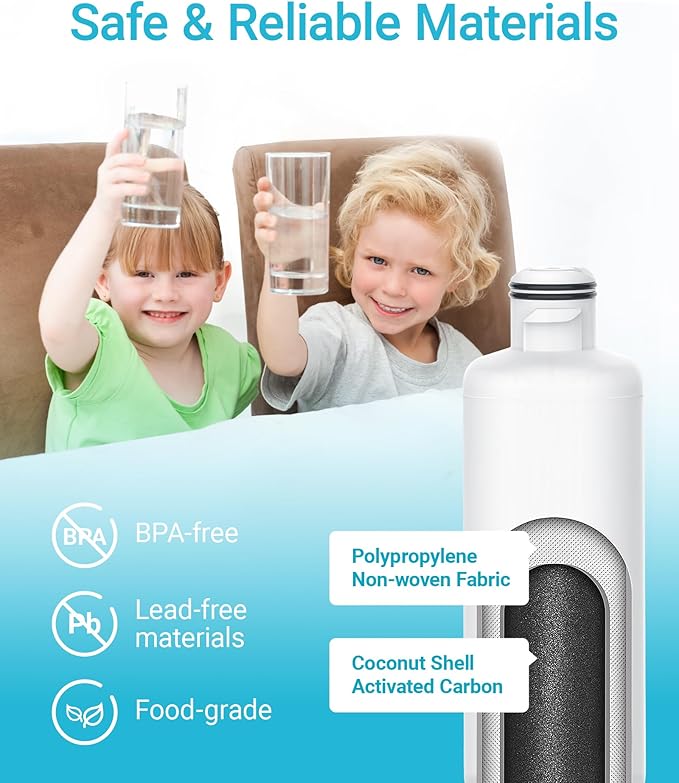 - 100% safe materials: AQUA CREST adopted BPA-free and food-grade materials in making this refrigerator filter. This claim is verified and backed by the NSF 372 certification that declares this filter housing lead-free.