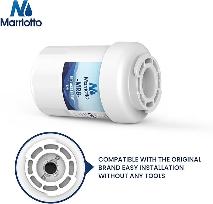- MARRIOTTO MR8 Water Filter Replacement Statement: The materials and construction are in compliance with the NSF/42 standard. Not Performance Tested or Certified by NSF. Tested & verified by independent laboratory testing, MR8 refrigerator water filter Tested at a flow rate of 0.528 gpm to a capacity of 200 gallons for the reduction of Chlorine.