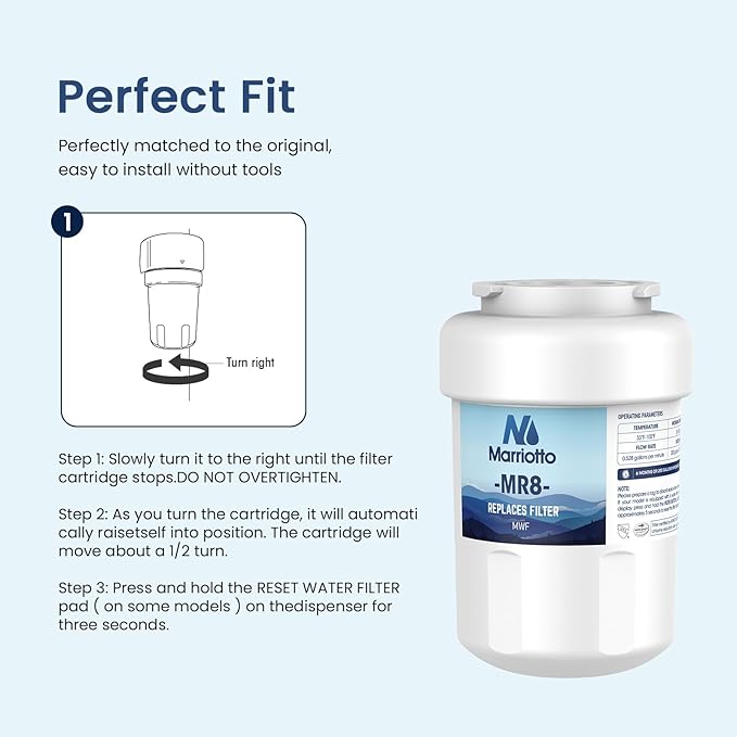 - 6 Months Filter Life: For best filtration results, fridge water filter replacement should be replaced every six months or 300 gallons. Safer drinking, MARRIOTTO that protect whole family.