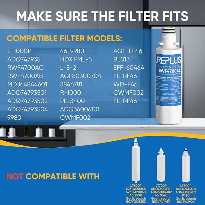 - โ๏ธ๐๐ผ๐บ๐ฝ๐ฎ๐๐ถ๐ฏ๐น๐ฒ ๐ ๐ผ๐ฑ๐ฒ๐น๐- RWF4700AC,LG LT1000P, LT1000PC, LT1PP-RWF4700AC,000PCS, LT-1000PC, ADQ74793501, MDJ64844601; Kenmore 46-9980, 9980, ADQ74793502, Pureza PF16, GLACIER FRESH GF-1000P, Crystala CF16, Waterdrop WD-LT1000P, AQUACREST AQF-LT1000P, ICEPURE RWF4700AC-S, Waterspecialist WS646A, Tier1 RWF1053, Maxblue MB-LT1000P, BELVITA BL003-S, Mist CWMF002, Zuma ZWFL7-RF300, Colpure CLT-2, OH OH-1000p, Aqua Blue AB-9834. Air Filter: 46-9918, 469918, 9918, ADQ73214404, ADQ73334008.
