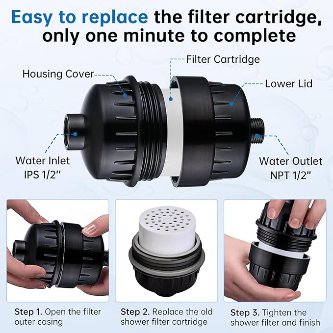 - ►AN EFFECTIVE FILTER GUARANTEES REFRESHING YOUR LIFE: This filter can reduce heavy metals, chlorine, heavy metals and other harmful impurities. Take better care of your skin and hair health. A healthy shower for you and your family.