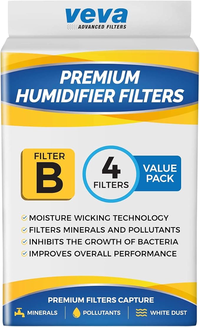 VEVA 4 Pack Premium Humidifier Filters Replacement for Holmes Filter B, HWF64, and Other Sunbeam Bionaire Cool Mist Humidifiers