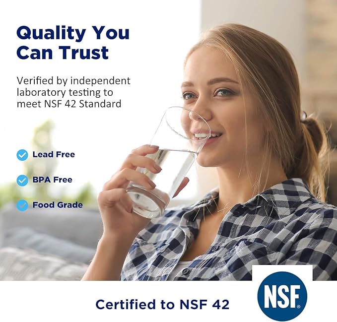 - PREMIUM MATERIAL - Made from food-grade, BPA-free activated coconut shell carbon with a highly porous structure. Certified to meet NSF/ANSI 42 standards, ensuring your water is great-tasting for your home.