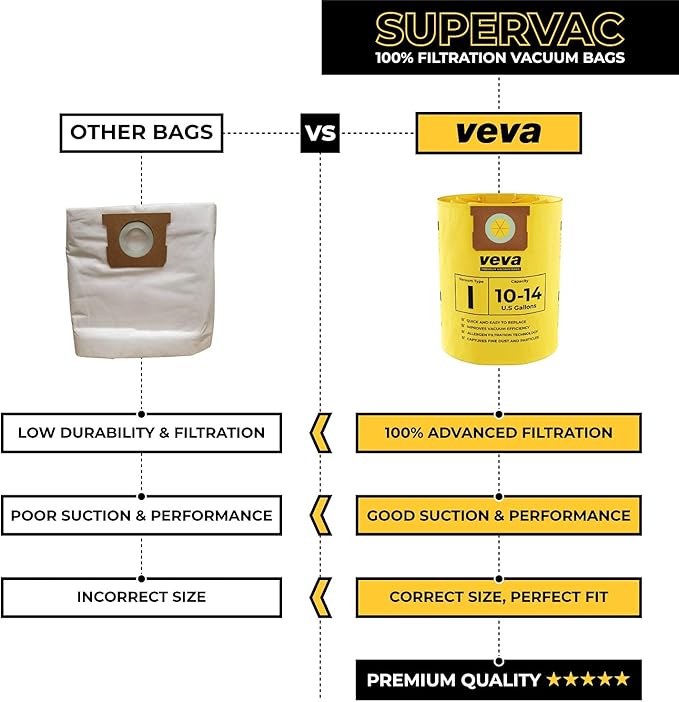 - COMPLETE REPLACEMENTS – VEVA’s high-efficiency disposable paper HEPA bags have a collar system that prevents dust from escaping during bag disposal. VEVA bags capture allergens to help you live in a clean and healthy home.