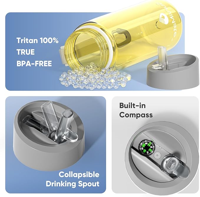 - [Built-in Compass] - Perfect for camping and outdoor exploration, the water bottle is equipped with a built-in compass on its top, helping you navigate and stay oriented during your adventures.