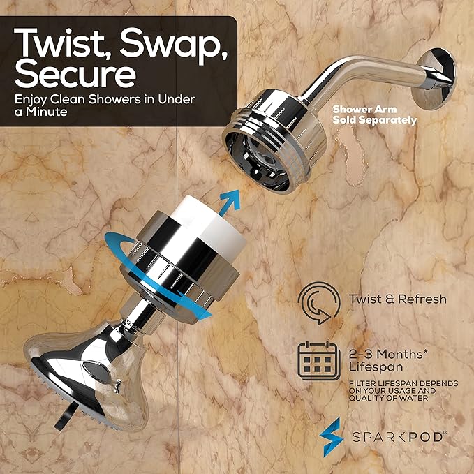 SparkPod 23-Stage Filtered Shower Head with 3 Spray Settings - High Pressure Shower Head with Filters for Dry Hair and Skin - Showerhead with Filter Reduces Chlorine & Heavy Metals (Polished Chrome)