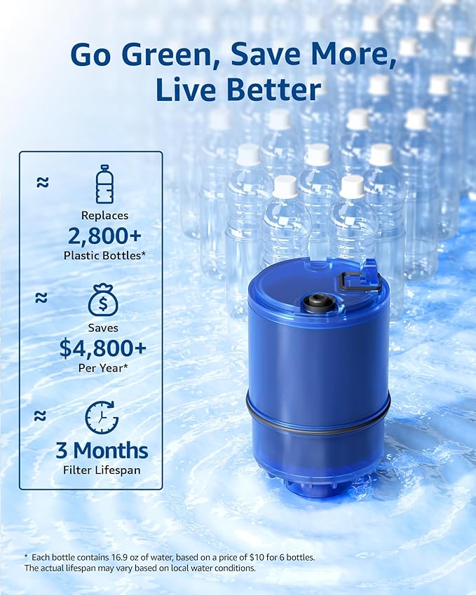 - Faster water flow: High speed of water flow with no compromise on efficient filtration that gives you better experience with water. Please soak the filter in clean tap water for 3 minutes to flush the filter and release the bubbles before using.