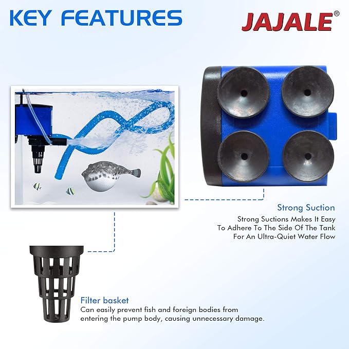 - Protective Filter Basket: Built-in filter basket prevents fish, debris, and foreign objects from entering the pump, reducing the risk of damage and extending pump life.