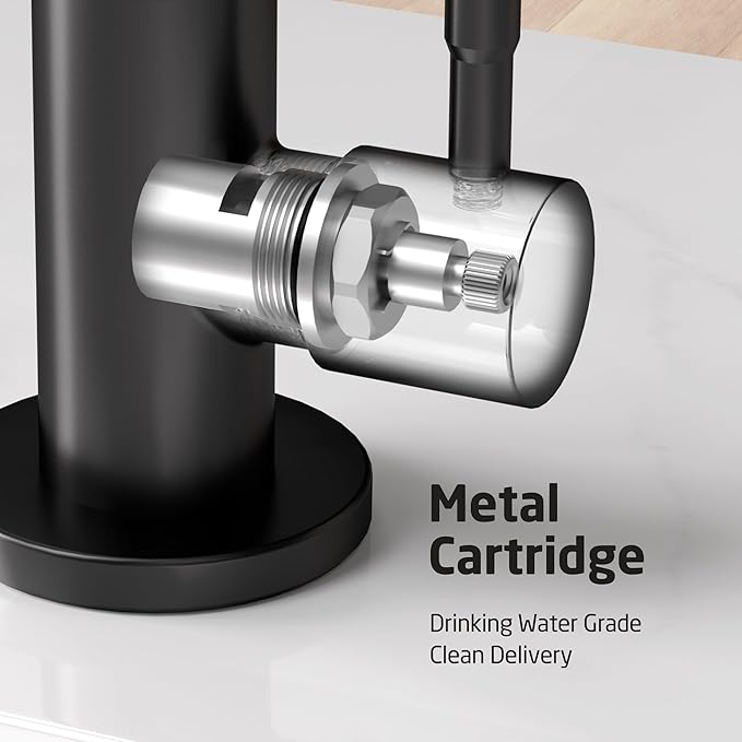 - 【Lead-Free Metal - Safe Drinking Water】All-metal design, inside and out, including lead-free 18/8 stainless steel cartridge. Say goodbye to plastic worries! Moreover, the one-piece spout (NO chemical glue) and food-grade seals ensure ZERO sec-contamination. Enjoy worry-free drinking water for your family's health!