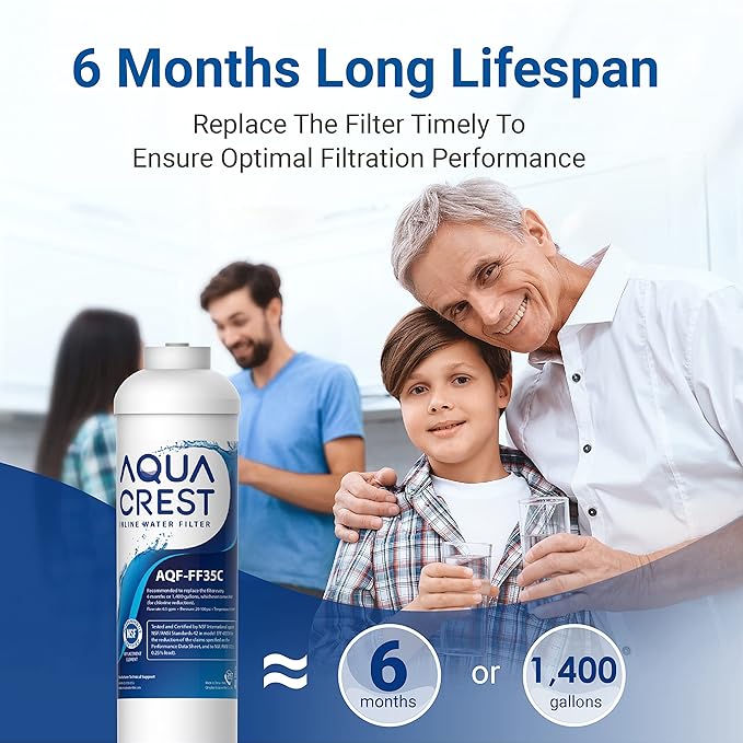 - AQUA CREST refrigerator water filter is a good filtration performance, backed by the standard NSF 42 and 372 certifications.