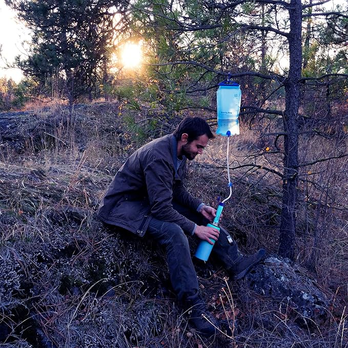 - Easy to Use: Just hang on a tree with the tree strap, hands-free filtration, enjoy effort-free (no pumping, no squeezing, barely any waiting) filtered water within minutes.