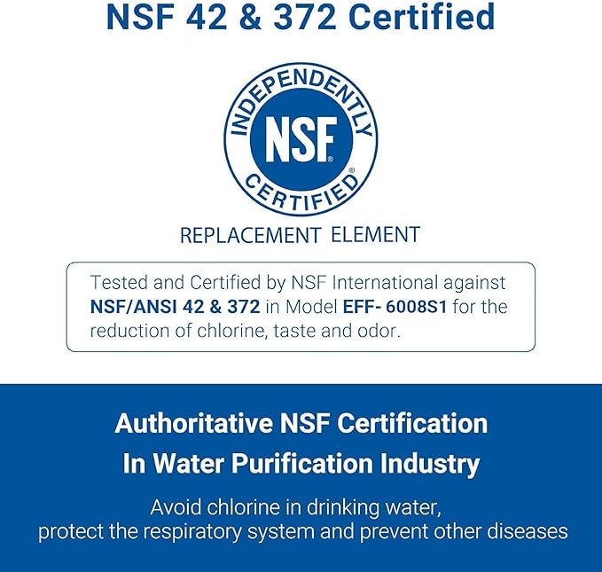 - 100% safe materials: AQUA CREST adopted BPA-free and food-grade materials in making this refrigerator filter. This claim is verified and backed by the NSF 372 certification that declares this filter housing lead-free.