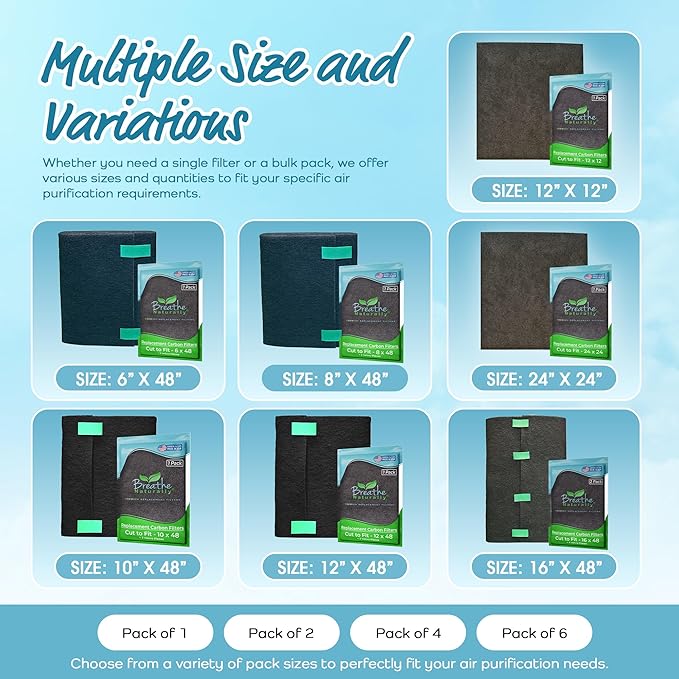 - UNIVERSAL CUT TO FIT: Each carbon filter comes with two hook and loop tapes for easy attachment and can be tailored to fit a wide range of applications. Simply cut the filter to the required size for a perfect fit. These versatile filters are ideal for use in air purifiers, vents, fans, windows, trash cans, litter boxes, range hoods, furnaces, HVAC systems, dehumidifiers, and many other uses. This customizable design ensures no gaps for unfiltered air, enhancing the efficiency of your devices.