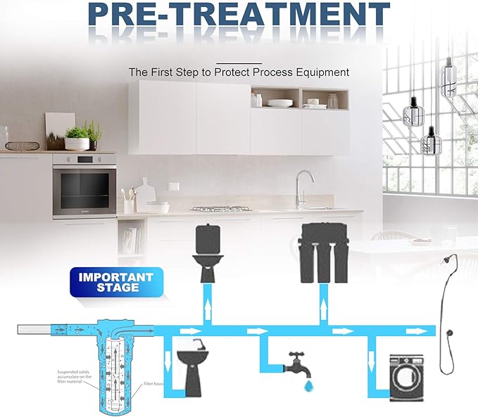 - FUNCTION - Remove 99% rust, silt, sand, iron and other undissolved particles in dirty water. As the first line of defense in the filtration system, protect your water using appliances and plumbing for cleaner water, improve water quality and taste.