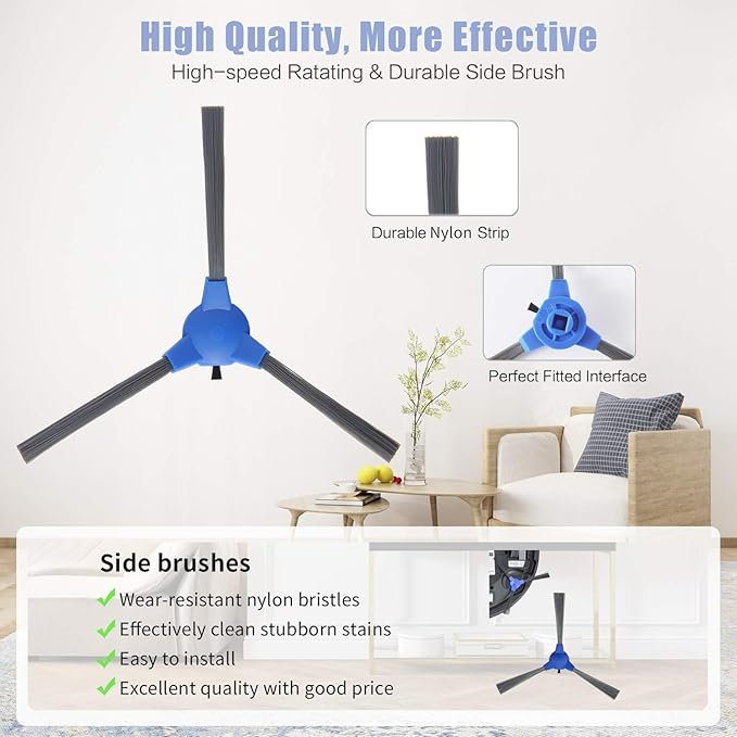 - What You Get: The accessory kit includes 8 pcs high efficiency filters,8 pcs side brushes, 1pcs main brush, 1 Primary Filter,1 Rolling Brush Guard