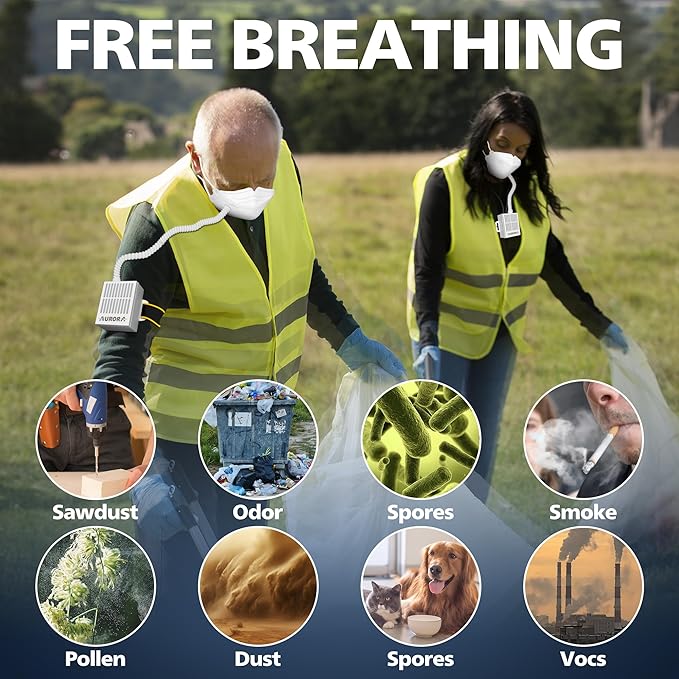 - Continuous 500hours working by each filter element, adjustable wind speed, can be used for 8-10 hours with full charge, larger battery capacity, longer working time.