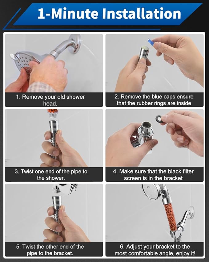 - Tools Free Installation: Luxsego shower head with filter beads, hose, bracket and all accessories you need are in an eco-friendly kraft paper box. No plumber and tools needed. With the simple and clear installation guide, you can quickly install it in 1 minute as easily as screwing in a bulb even if you donβt have any install exprience