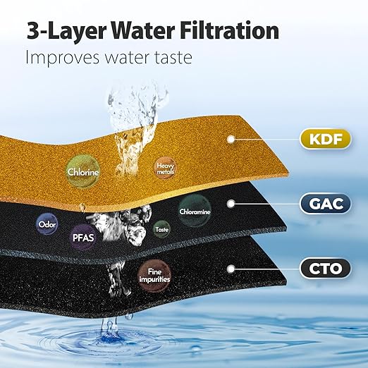 - Removes PFAS and Heavy Metals: Protect your health with a 2-stage water filter system designed to remove harmful PFAS. the 1st stage kdf plus gac carbon filter (FG15B-KS) and the 2nd stage cto carbon block filter (FC15B) effectively remove up to 99% of contaminants, including chlorine, lead, mercury, and other heavy metals. they also address issues like turbidity, cloudiness, bad taste, odors, and discoloration