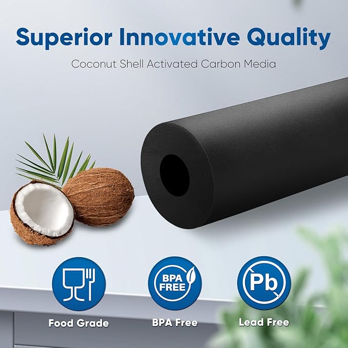 - ❄️Strict Quality Control -All products are produced under the ISO9001, 14000 standard and inspected under strict quality control. Each filter is produced through 34 production processes, 400PSI pressure test, 10,000 water hammer tests, and 6 independent tests.